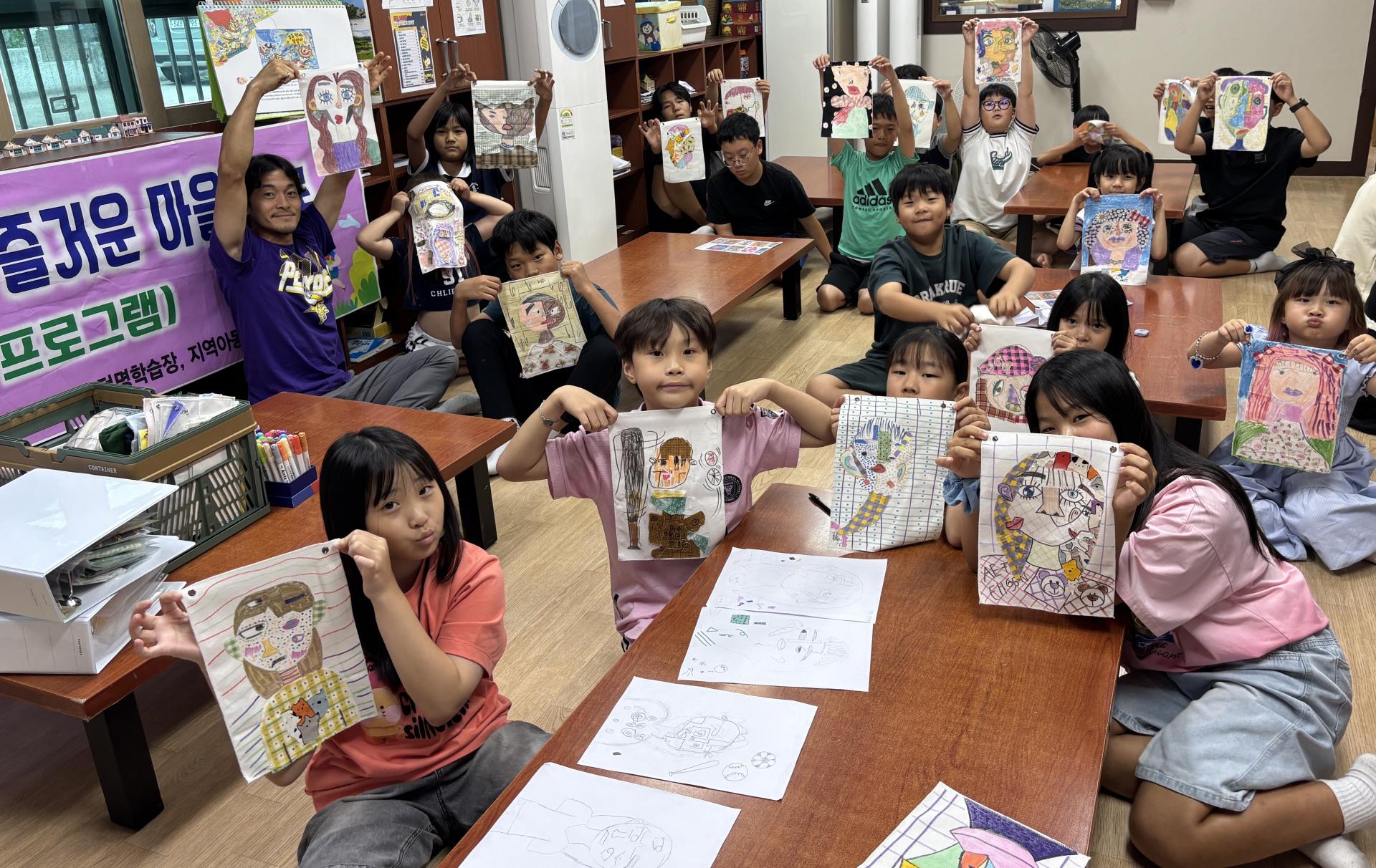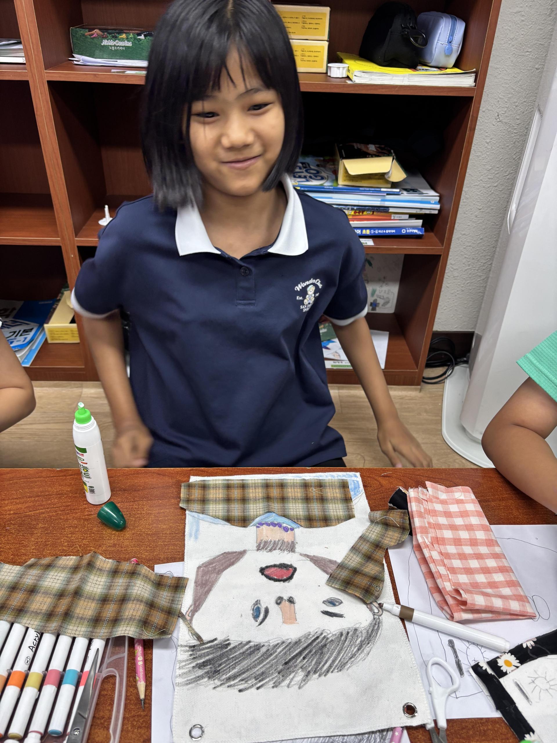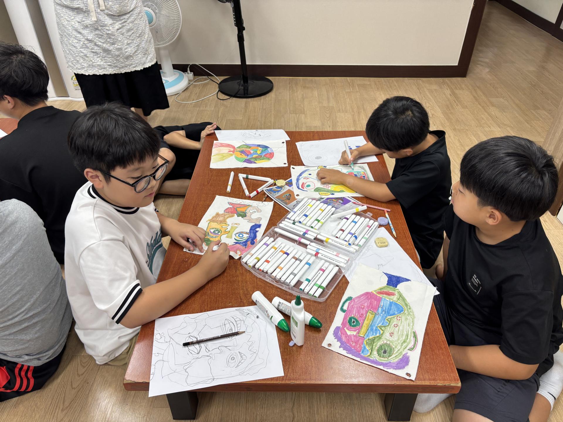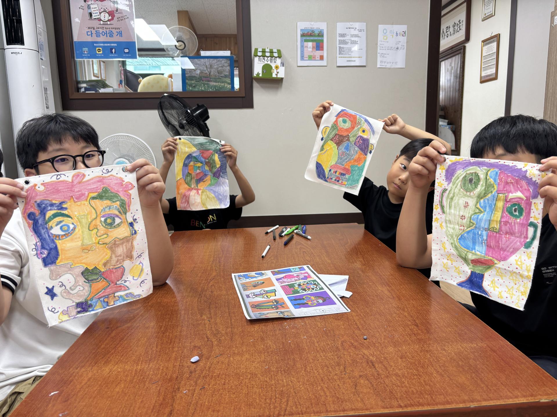 아동들이 교육지원청 수업으로 페브릭 포스터 만들기에 참여했습니다. 본인의 얼굴을 추상적으로 표현하며 자유롭게 그림을 그리고, 천을 오리고 붙이며 색칠하는 과정을 통해 창의력과 개성을 마음껏 발휘할 수 있었습니다. 완성된 작품 속에는 아동들의 상상력과 자신만의 색깔이 가득 담겼습니다.